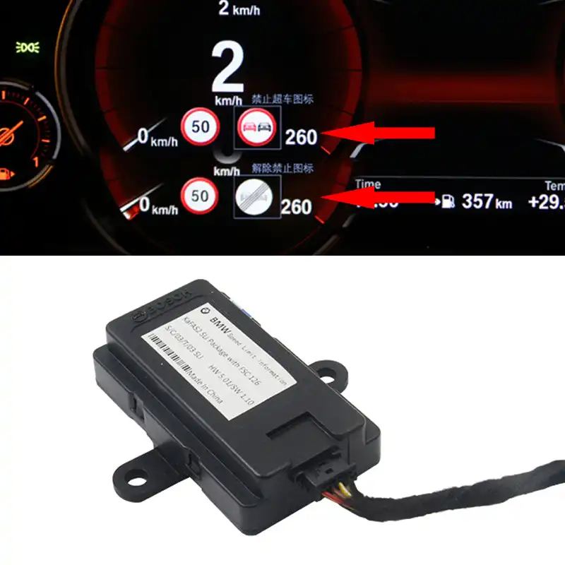 Cameras in the rear view mirror of your BMW are constantly detecting speed limit signs on the roadside ensuring you always see an accurate speed limit in yo. A clear and easy-to-see indicator will be added to your BMWs instrument cluster right beside the speedometer showing the speed limit on your current stretch of road. Front Electronic Module FEM_01 control unit.